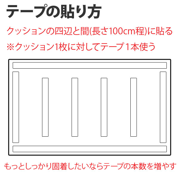使用上の注意※両面テープ 1本で、クッション材 1枚を取り付けられるセットです。(貼り付け方より多くテープを使いたい場合は、両面テープを追加してください)